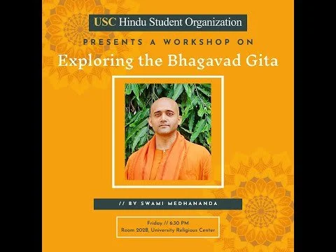 Ongoing Classes Bhagavad Gita in the Light of Sri Ramakrishna Patanjali’s Yoga Sutras Gospel of Sri Ramakrishna Completed Classes Isha Upanishad in a New Light Exploring the Bhagavad Gita (USC) Swami Vivekananda’s “What is Hindu Dharma?”